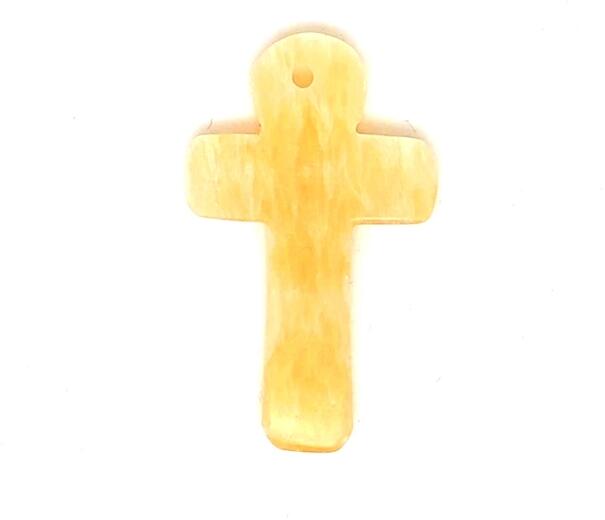 Kalcit medál (kereszt szögletes kopt narancs átfúrt Kína Ásvány medál) Egyedi ásvány ékszer.