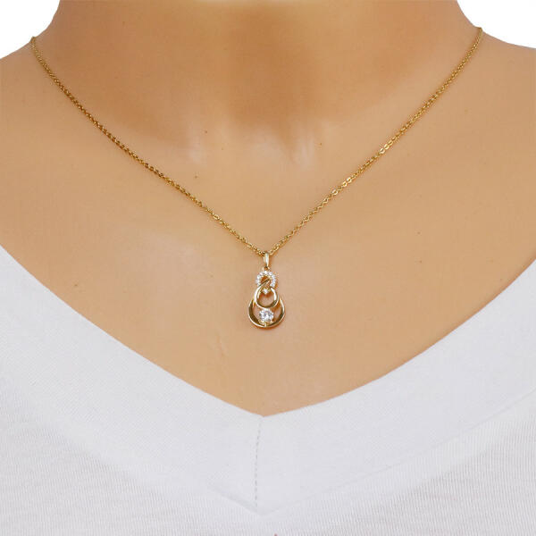 A 9K sárga arany medál egy fordított cirkóniás könnycseppből áll, amelyet egy fényes, kerek vonal díszít. Ez a vonal egy átlátszó cirkónia segítségével csatlakozik egy nagyobb könnycsepp körvonalhoz. A medálhoz tartozó láncra kerülő szem felfelé szélesedik. A medál mérete: 10 x 19 mmA láncra kerülő szem szélessége: 1,5 mmA medál súlya: 0,7 gFémjelzéssel ellát