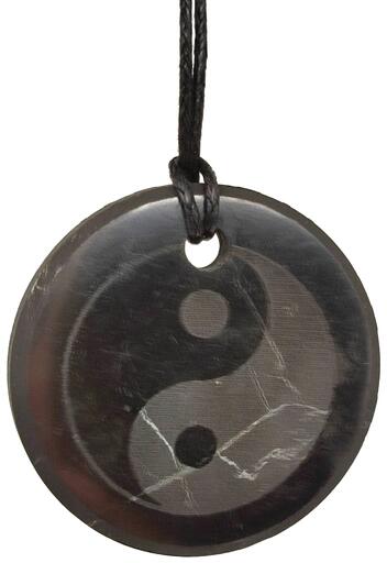 Shungit medál (gravírozott yin yang Oroszország Shungit) Egyedi ásvány ékszer.