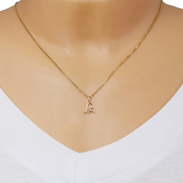 A 14K sárga arany medál keskeny, szabálytalan szívkörvonal alakú. Az egyik felét három kerek átlátszó cirkónia díszíti. A szív alján és tetején egy-egy ovális hurok található. A medál sima és fényes felületű. A láncra kerülő szem ovális alakú és felfelé szélesedik. A medál mérete: 10 x 11 mmA láncra kerülő szem szélessége: 1,5 mmA medál súlya: 0,23 gFémj