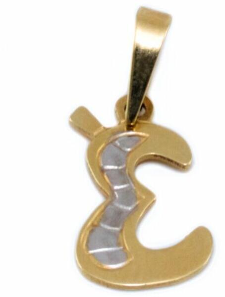 Klasszikus és kedvelt fazonú, ródiummal díszített, kétszínű arany "É" betű medál.