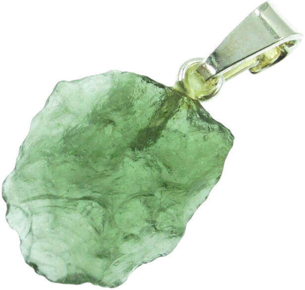 Gyönyörű áttetsző, palackzöld színű nyers moldavit meteoritból készült medál. A meteorit garantáltan természetes, nem üveg és nem utánzat. Lelőhelye: Csehország A moldavit jelenleg igazi kuriózumnak számít. Ez részben annak köszönhető, hogy Földünkön csupán egyetlen helyén lelhető fel. Kialakulása 14,8 millió évvel ezelöttre tehető, egy nagy méretű meteorit b