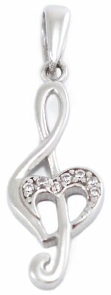 Kedves kis darab ez a violinkulcsot mintázó, apró cirkónia kövekkel ékített, ródiummal bevont arany medál.