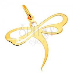 Az 585 arany medált egy lapos, fényes felületű, repülő szitakötő alkotja, amelynek cirkóniás feje, enyhén hajlított teste és két pár szárnya van. A szitakötő szárnyait könnycsepp alakú, díszes kivágások díszítik. A láncra kerülő szem ovális. Medál méretei: 18 x 14 mmMedál súlya: 0,3 gLáncra kerülő szem szélessége: 2 mmFémjelzéssel ellátott. Medál lánc n