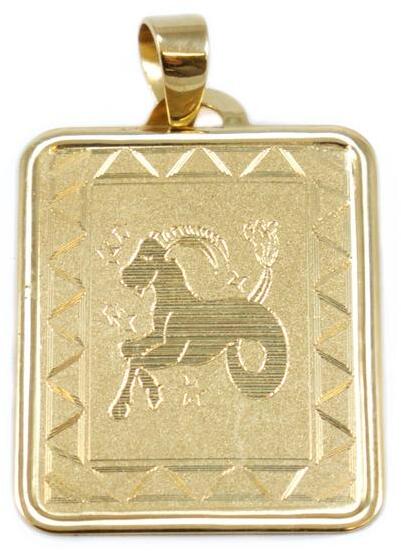 Kedvelt fazonú, véséssel és mattítással díszített, bak horoszkóp, sárga arany lap medál.
