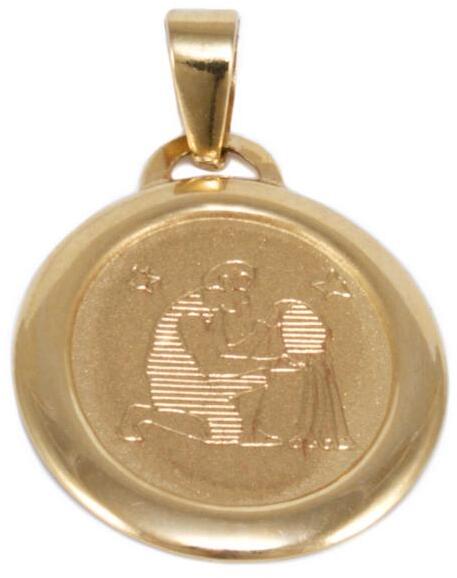 Klasszikus és kedvelt fazonú, mattítással és véséssel díszített, ovális "Vízöntő" arany lapmedál.