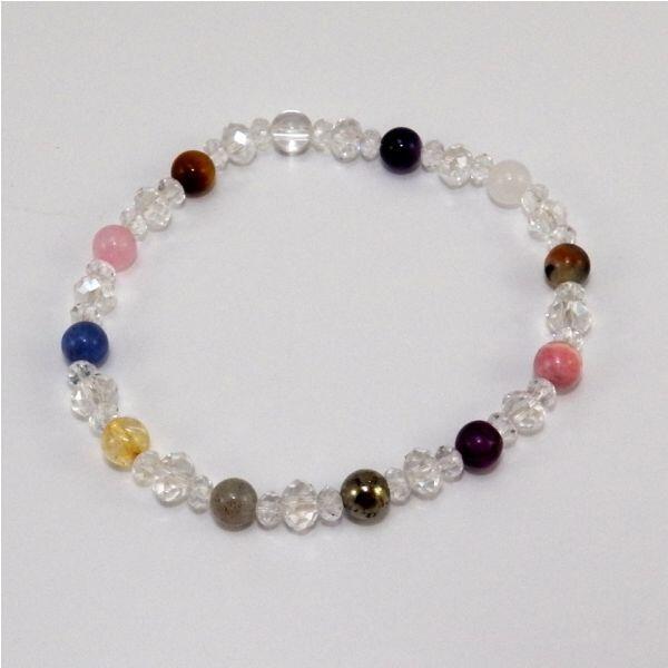 A 12 DNS szálhoz, 12 kristály tartozik, az ékszer ezzel a 12 kristállyal készült, amely a napi szellemi munkánkat erősíti. Az 1. szál az AMETISZT A 2. szál a HEGYIKRISTÁLY A 3. szál a TIGRISSZEM A 4. szál a RÓZSAKVARC Az 5. szál a SZODALIT A 6. szál a CITRIN A 7. szál a LABRADORIT A 8. szál a PIRIT A 9. szál a SZUGILIT A 10. szál a RODOKROZIT A 11. szál a CSAROIT A 12. szál