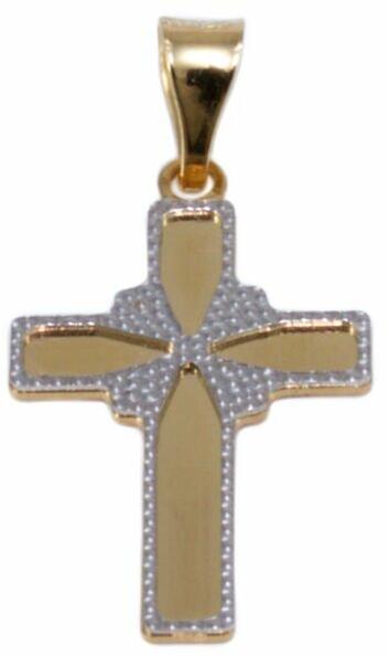 Könnyű súlyú, ródiummal és vésett mintával díszített arany kereszt medál.