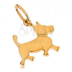 Medál 9K sárga aranyból lapos kis kutya alakban gravírozott nyakörvvel. A medál kétoldalas. A láncra kerülő szem vékony, ovális és a kutya fülén helyezkedik el. A medál méretei: 11 x 10 mmA medál súlya: 0,3 gA láncra kerülő szem szélessége: 1,5 mmFémjelzéssel ellátott. Medál lánc nélkül.