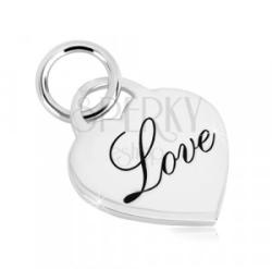 A 925 ezüst medál szimmetrikus szív alakú, amelynek tetején egy ív található. A szív elejét a finoman gravírozott "Love" - "Szerelem" felirat díszíti. A feliratot egy réteg fekete fénymáz emeli ki. A medál felülete sima és fényes. A láncra kerülő szem kerek. A medál mérete: 16 x 19 mmA láncra kerülő szem szélessége: 5 mmA medál súlya: 2 gFémjelzéssel ellátva. Med