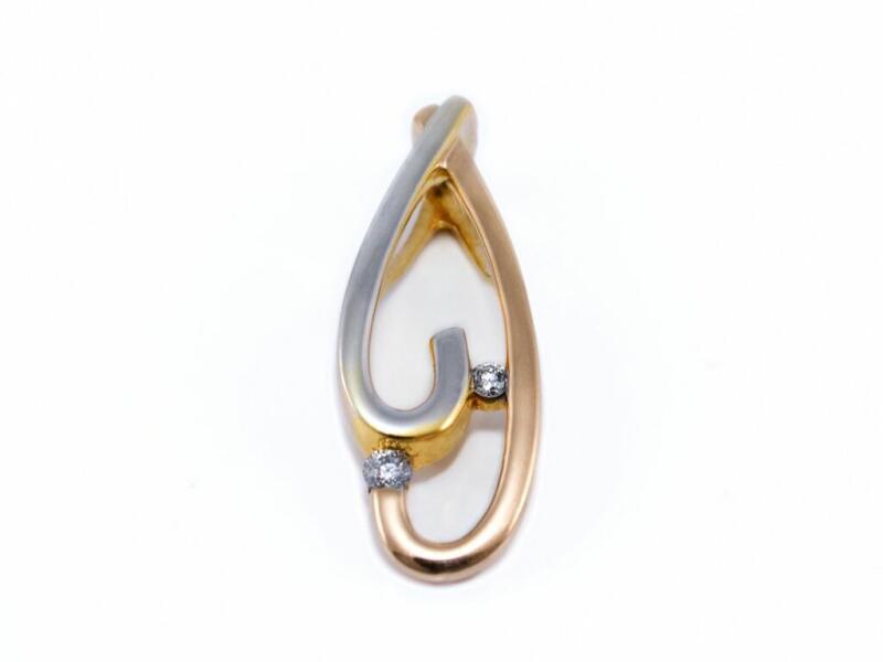 Modern stílusú, kedvelt fazonú, fehér cirkónia kövekkel és ródiummal díszített, áttört futó arany medál.