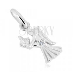 A 925 ezüst medál a Szűz csillagjegyet ábrázolja. A lány hosszú szoknyát hord, amelynek felső részét átlátszó kerek cirkóniák díszítenek. Kinyújtott kezében három búzakalászt tart. Hátán két angyalszárny található. A medál hátulja lapos. A láncra kerülő szem ovális alakú. A medál mérete: 9 x 15 mmA láncra kerülő szem szélessége: 2,5 mmA medál súlya: 0,7