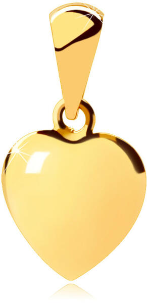 14K sárga aranyból készült arany medál, szimmetrikus szív, mindkét oldalán domború, tükörsima felülettel. A láncon lévő kapocs keskeny, felfelé szélesedik. A medál méretei: Méretek: 8 x 10 mm A kapocs szélessége: 3 mm A medál súlya: 0,32 g Fémjel - van. A medál lánc nélkül van.
