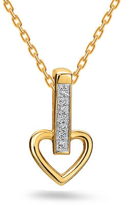 A Diamond Heart kollekció medálja a romantika szimbóluma, amely a szív motívumán keresztül a szerelem időtlen üzenetét közvetíti. Ez a 14k sárgaaranyból készült medál finom és precíz kivitelezésével tűnik ki. A csillogó tiszta gyémántok gondosan be vannak foglalva, így egy függőleges vonal jön létre, amely hangsúlyként működik, és a szemet magára a szívre vezet