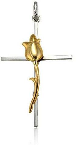 Ezüst kereszt medál, tulipánnal.