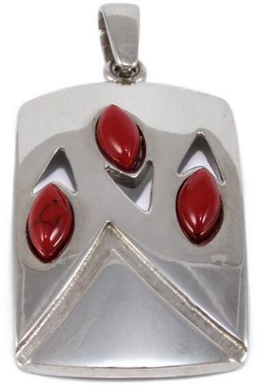 Modern stílusú, mutatós, áttört, ródiummal bevont ezüst medál festett howlittal díszítve.