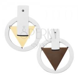 Mitológiai medál pároknak. A kisebb medált egy arany színű háromszög alkotja, a csúcsai beletolódnak a karikába. A két részt egy téglalap tartja össze. A nagyobb medálba egy fekete háromszög van ültetve. A kisebb kör átmérője: 20 mmA nagyobb kör átmérője: 27 mmA láncra való szem mérete, kisebb medál: 2 mmA láncra való szem mérete, nagyobb medál: 3 mmA medálok l