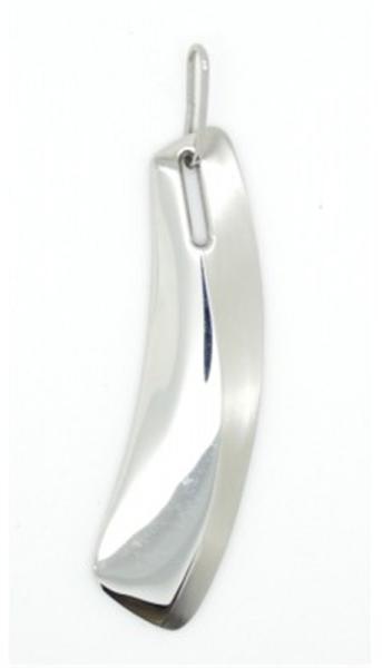 Szablyára hasonlító, gravírozható, rozsdamentes acél medál. hosszúság: 7 cmszélesség: 1,5 cmSúly: 15,26 gramm