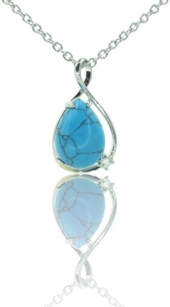 Strasszal díszített türkinit medál, "végtelen" jel foglalatban, 45cm-es orvosi acél nyakláncon. Ásvány mérete: 14*18mm A türkinit vélt gyógyhatása