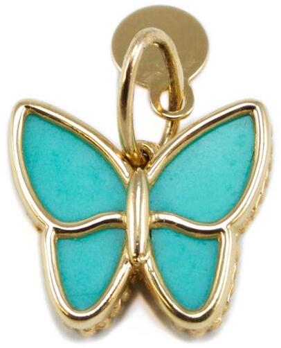 Modern és kedvelt fazonú, pillangó formájú, türkiz színű betéttel díszített, sárga arany medál.