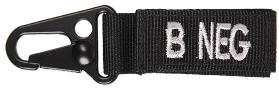 Karabiner vércsoport jelzéssel. Felakasztásra szolgál, életmentő információt nyújt. Szalag: 100% poliészter, Karabiner: cinkötvözet. Méretek: 11x3,7cm, Súly: 22g. Felhasználás: kulcsokra, pénztárcára, övre, stb. Előnyök: merev kivitelezés.