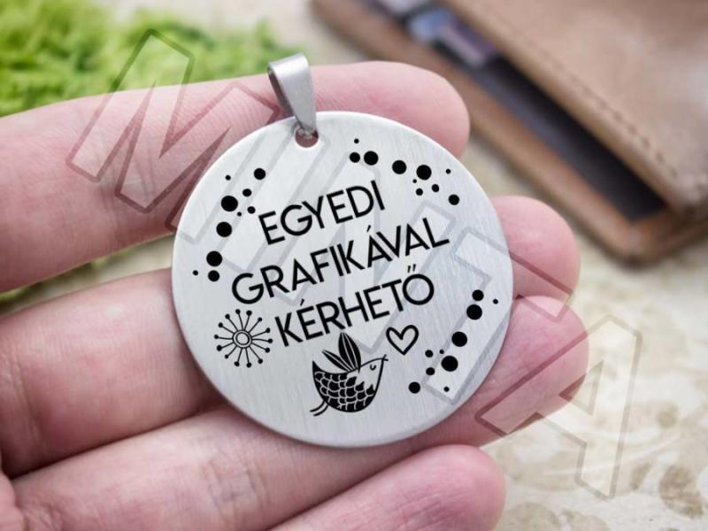 Ez az egyedi medál dizájn csak nálunk kapható. A legjobb gesztus és ajándékötlet! Választható rozsdamentes alumínium medál, vagy nemesacél tükörpolírozott kivitel is, arany vagy ezüst színekben. Az alapár az alumínium medálra vonatkozik lánccal vagy kulcstartóval együtt (válassz a listából, vagy rendeléskor írd be a MEGJEGYZÉSBE, hogy mire szereljük fel a medált, é