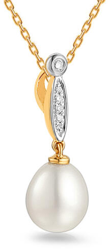 Ez az időtlen női medál vegyes aranyból készült, igazi gyöngyszem, mely a gyöngyök eleganciáját és a briliáns csiszolású gyémántok finom ragyogását ötvözi. A briliánscsiszolású gyémántokkal és egy fehér színű édesvízi Biwa gyönggyel díszített medál tökéletesen kiemeli a láncot. A medál szemét 5 darab 0,020 ct összsúlyú, H színű és SI1 tisztaságú bri