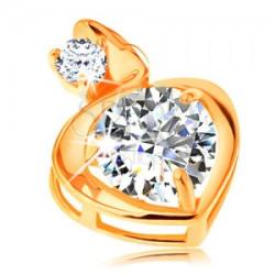 A 14K sárga arany medál egy szív formájú sávból áll, amely egy nagy, kerek, átlátszó cirkóniát szegélyez. A végén található a láncra kerülő szem. A sáv felső részét egy átlátszó, csillogó cirkónia díszíti. A medál hátoldala üreges. Medál méretei: 8 x 10 mmMedál súlya: 0,5 gA láncra kerülő szem szélessége: 1,5 mmFémjelzéssel ellátott. Medál lánc nél