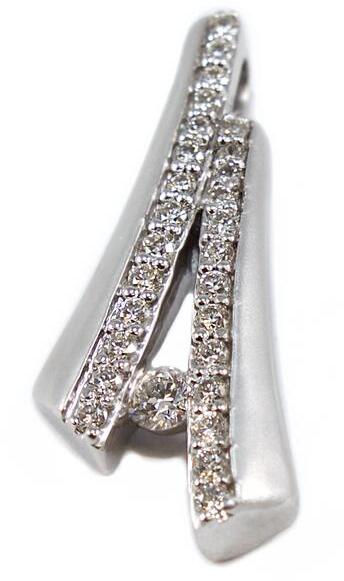 Modern stílusú, mattírozással díszített, gyémánt kövekkel ékített, fehérarany futó medál.