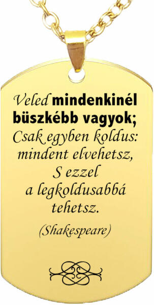 Ez az egyedi medál dizájn csak nálunk kapható. A legjobb gesztus és ajándékötlet! Választható rozsdamentes alumínium medál, vagy nemesacél tükörpolírozott kivitel is, arany vagy ezüst színekben. Az alapár az alumínium medálra vonatkozik lánccal vagy kulcstartóval együtt (válassz a listából, vagy rendeléskor írd be a MEGJEGYZÉSBE, hogy mire szereljük fel a medált, é