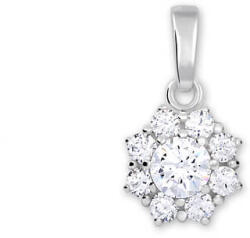 Modern stílusú, ródiummal bevont, gyémánt kővel ékített virág fehérarany medál.