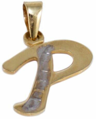 Modern stílusú, kedvelt fazonú, ródiummal és véséssel díszített, kétszínű arany "P" betű medál.
