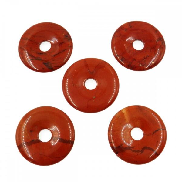 Pirosjáspis ásványból faragott donut (fánk) medál. Medál mérete: 40mm A fotón látható valamelyik medált kapja. A jáspis gyógyhatása