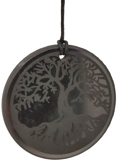 Shungit medál (életfa gravírozott Oroszország Shungit) Egyedi ásvány ékszer.