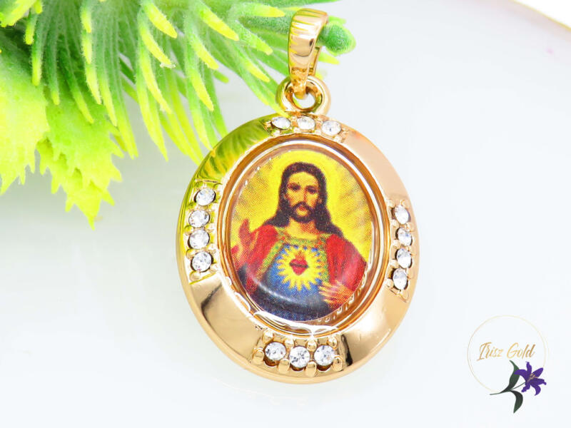Gold Filled Jézust ábrázoló medál kis cirkon kövekkel Szin:18K Méret: 25x20mm A forgalmazott divatékszerek alapanyaga nikkel és ólommentes ezért többnyire nem okoznak allergiás tüneteket, nyugodtan hordhatják fémérzékeny emberek is. Általában nem színezik a bőrt és más divatékszerekhez képest nagyságrendekkel jobb kopásállósággal rendelkeznek. A fehér (ezüst) szín