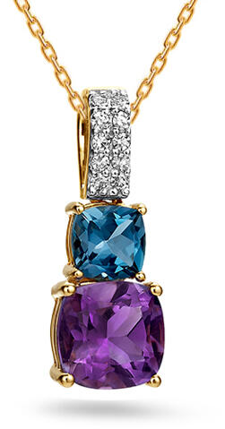 Arany gyémánt medál ametiszttel és London blue topázzal 0,190 ct, modell KU1653P