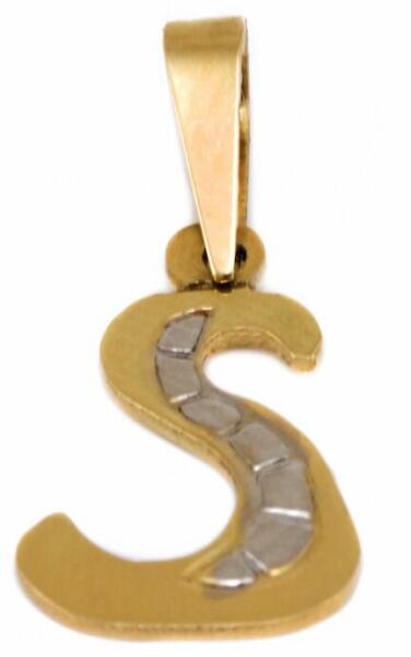 Kedves és személyre szóló ajándék lehet ez a véséssel díszített, kétszínű arany "S" betű medál.