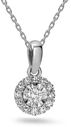 Finom és elegáns medál 14 karátos fehéraranyból, amely modern csavart ad egy klasszikusnak. A természetes briliáns csiszolású, összesen 0,12 karátos gyémántokkal díszített medál ideális választás azoknak a nőknek, akik egy időtlen, mindennapi viseletre alkalmas darabot keresnek. Ezt a medált olyan nőknek tervezték, akik értékelik az időtlen stílust és a luxus részlet