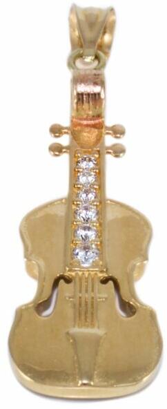 Különleges és aprólékosan kidolgozott, csillogó cirkónia kövekkel ékített, masszív kialakítású hangszer arany medál.