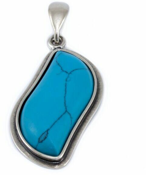 Modern stílusú, mutatós darab ez a türkizt utánzó festett howlit kővel díszített ezüst medál.