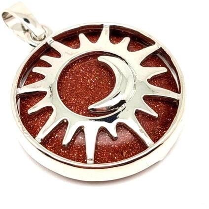 Goldstone vörös medál (hold nap fém Ásvány medál) Egyedi ásványból készült termék.