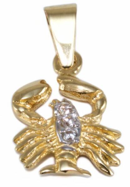 Modern stílusú, kedvelt fazonú, könnyű súlyú, de mutatós, ródiummal és cirkónia kővel ékített "Rák" horoszkópos arany medál.