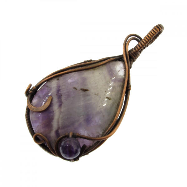 Nagy méretű chevron ametiszt kaboson medál, antikolt réz drót foglalatban. Ametiszt mérete: 27*38mm teljes magasság: 61mm