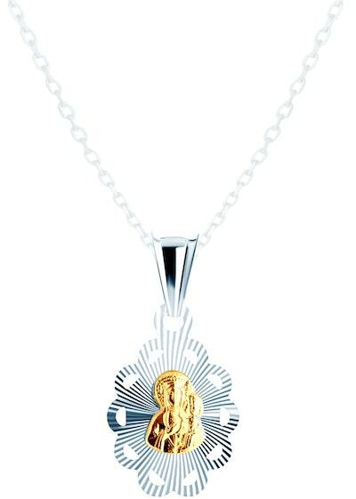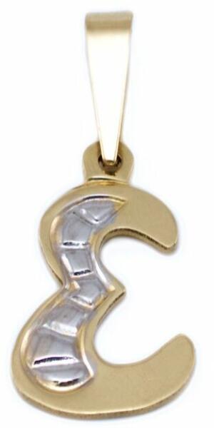 Klasszikus és kedvelt fazonú, ródiummal díszített, kétszínű arany "E" betű medál.