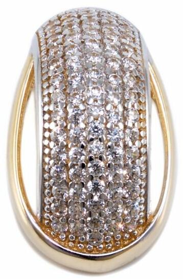 Modern stílusú, kedvelt fazonú, oldalt áttört kialakítású, cirkónia kővel ékített, domború arany medál.