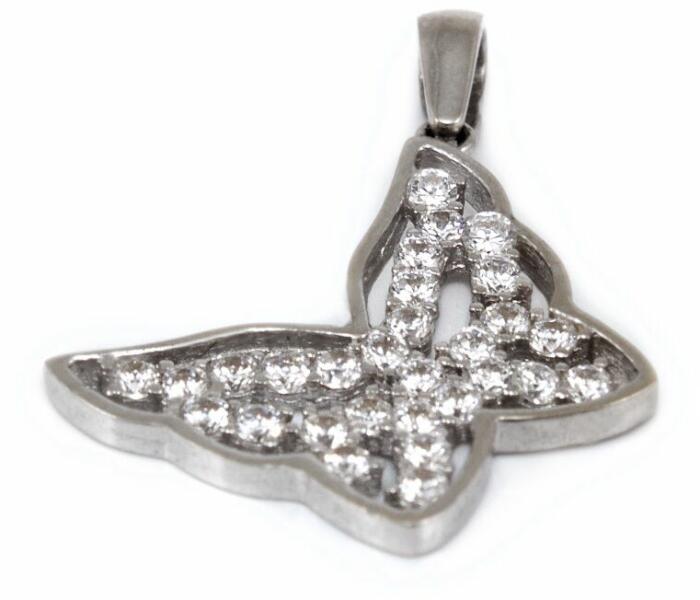 Kedves kis darab, ez a csillogó cirkónia kövekkel ékített, áttört, ródiummal bevont pillangó motívumot ábrázoló arany medál.