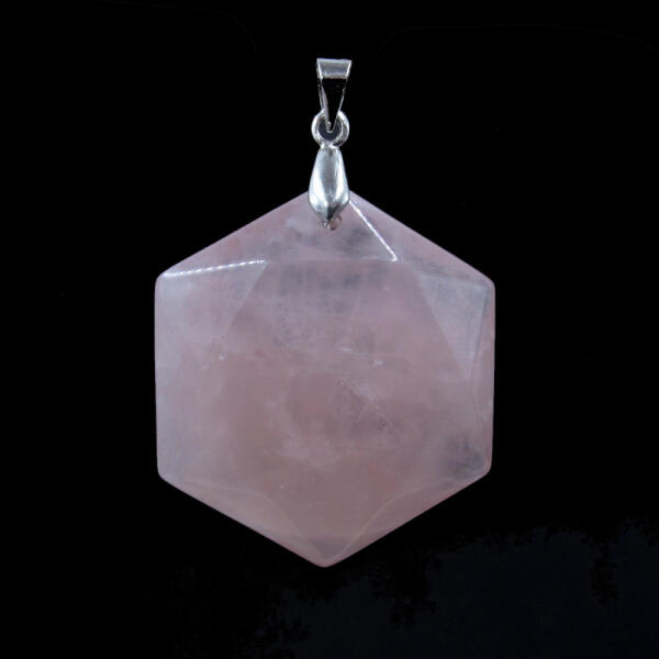 Hexagon formára csiszolt természetes Rózsakvarc medál. A drágakő mérete: 25x30mm Bővebb információ "ADATOK PARAMÉTEREK" fül alatt. A rózsakvarc gyógyhatása