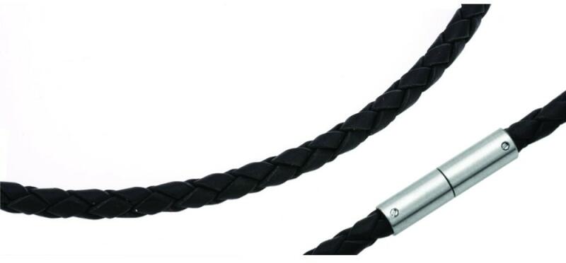 Rozsdamentes acél és bőr férfi nyaklánc. Fekete színű természetes bőr. Biztonsági bajonett zár. Többféle méretben. Cikkszám : K40BL Szín : Fekete Nyaklánc anyaga : Rozsdamentes acél és bőr Méretválaszték (hossza) : 45 , 50 cm Bőr vastagsága : 4mm Nikkelmentes : Igen Vízállóság : nem vízálló Garancia : A termékre egy év garancia érvényes!