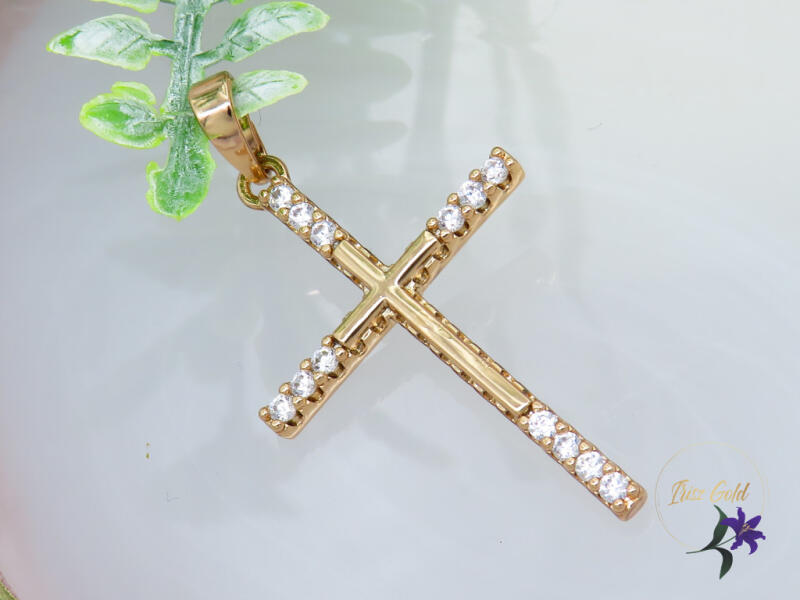 Gold Filled kereszt medál apró cirkóna kövekkel díszítve Szin: 18K Méret: 40x20mm A forgalmazott divatékszerek alapanyaga nikkel és ólommentes ezért többnyire nem okoznak allergiás tüneteket, nyugodtan hordhatják fémérzékeny emberek is. Általában nem színezik a bőrt és más divatékszerekhez képest nagyságrendekkel jobb kopásállósággal rendelkeznek. A fehér (ezüst) s