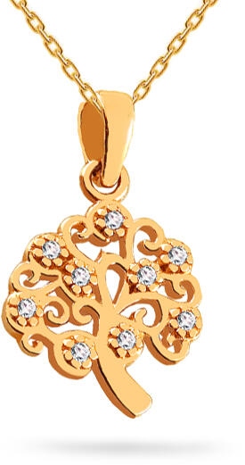 A tizennégy karátos, sárga aranyból készült, csodálatos medál Életfát ábrázol - a teremtés és a halhatatlanság szimbólumát. Az ékszer tökéletes megmunkálása, az arany magas fényével kombinálva, garantáltan lenyűgözi Önt szépségével. Tündöklő, tiszta cirkonok díszítik.